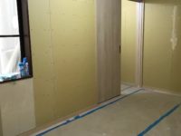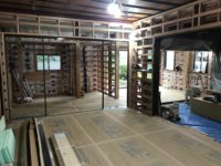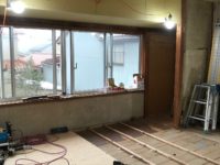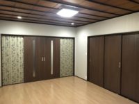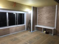 和室の天井を落とし竿と廻縁を撤去し新たに木下地を行いプラスターボードを張っていきます。(解体[...]